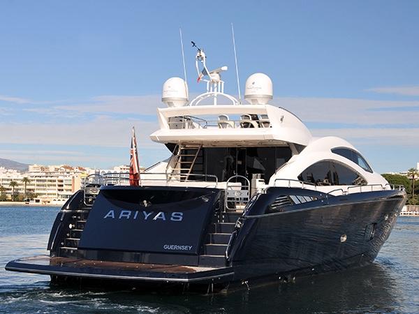 ARIYAS is an elegant Sunseeker Predator 84 offering a refined and comfortable yacht charter experience in Ibiza. With her sleek lines and well-balanced design, ARIYAS is ideal for guests looking to enjoy luxury cruising.