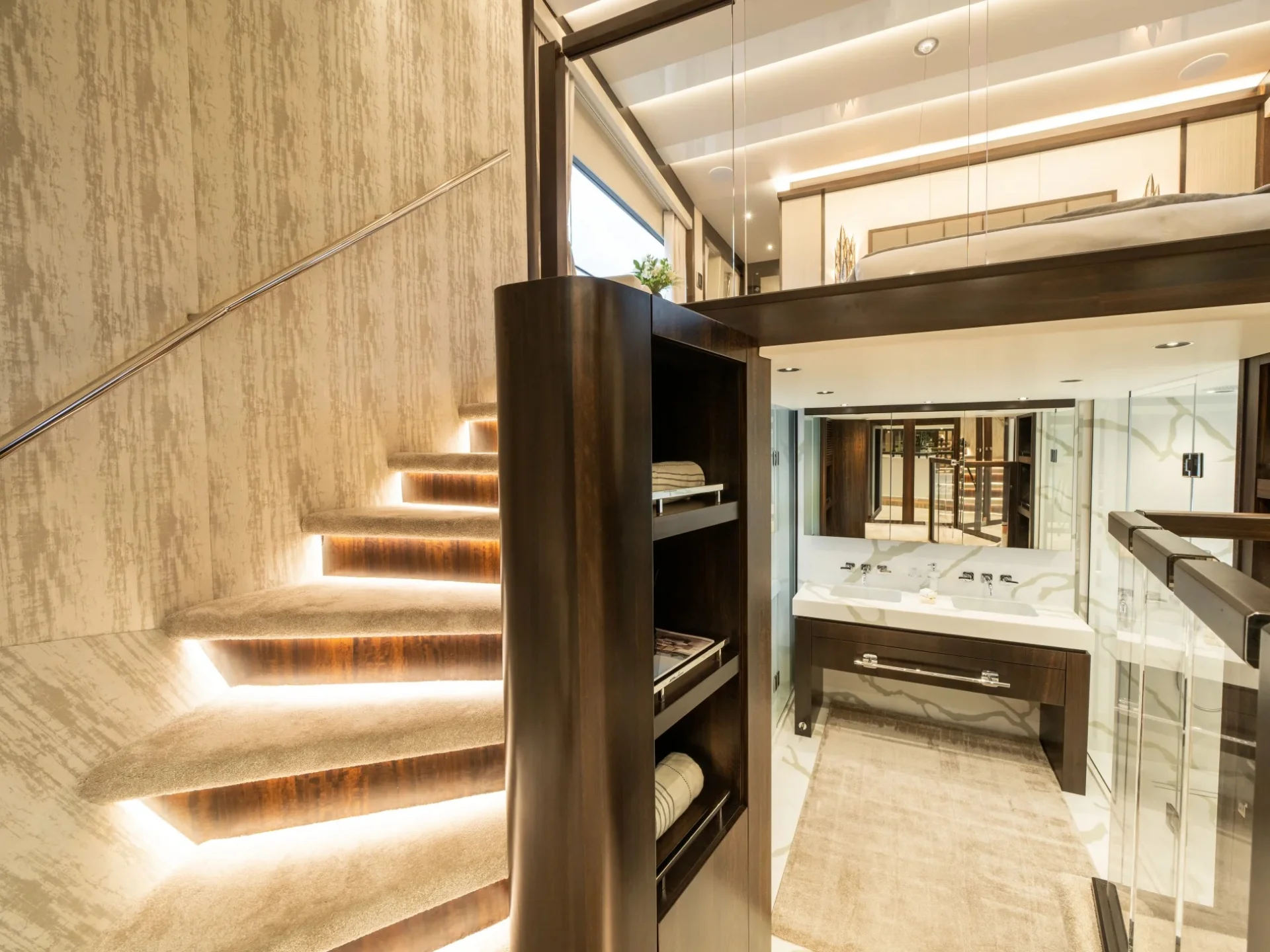 Outdoor areas are designed for enjoying the Mediterranean lifestyle. Guests can relax on spacious deck areas ideal for sunbathing, socialising, and dining outdoors while taking in coastal views. The yacht’s layout allows for a smooth flow between interior and exterior spaces, creating a comfortable environment throughout the day.