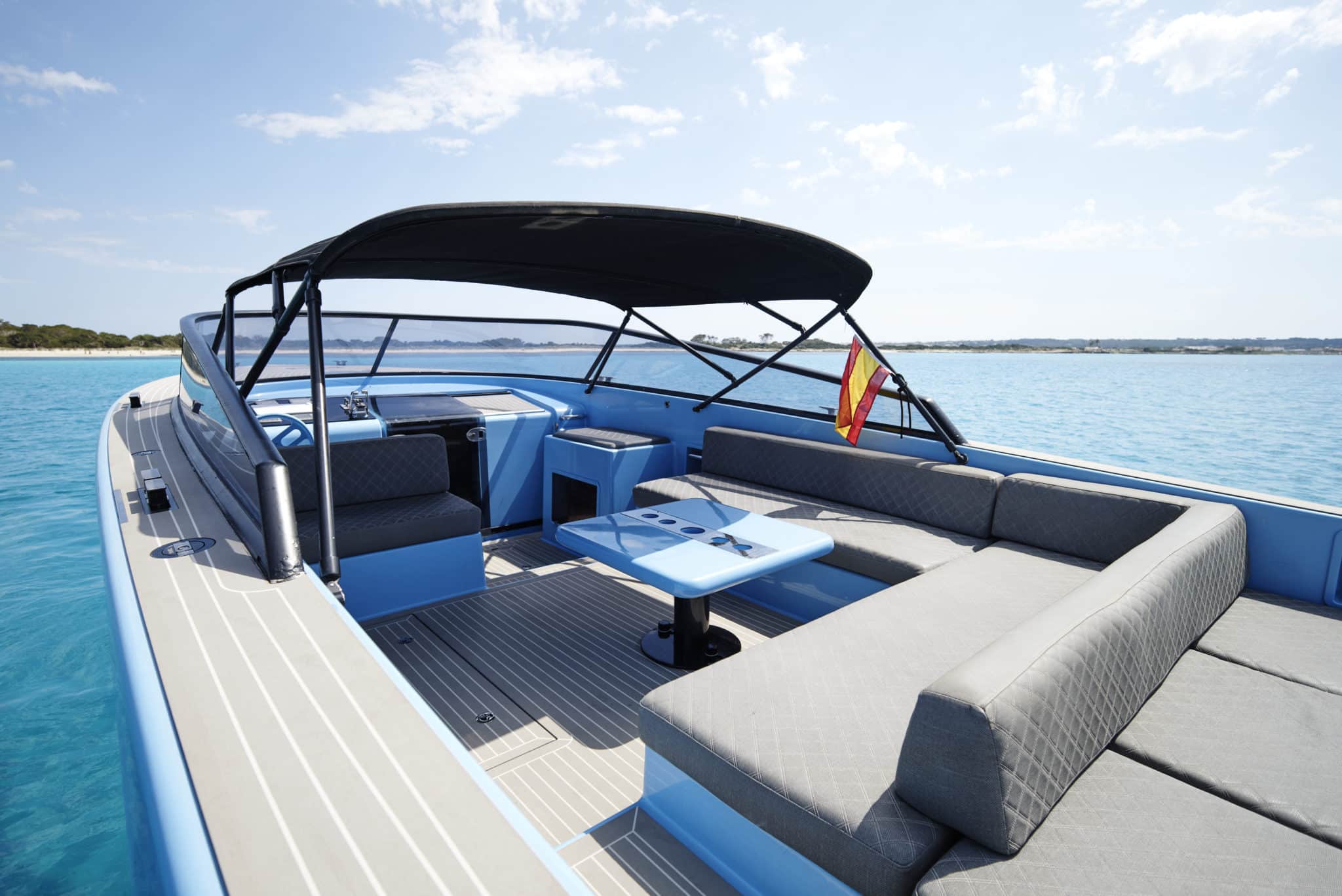 A day on BLUE STEEL in Ibiza feels effortlessly stylish. Perfect for cruising between beach clubs and hidden coves, she delivers a smooth and refined ride. Time aboard BLUE STEEL is about enjoying the island’s beauty with elegance and ease.