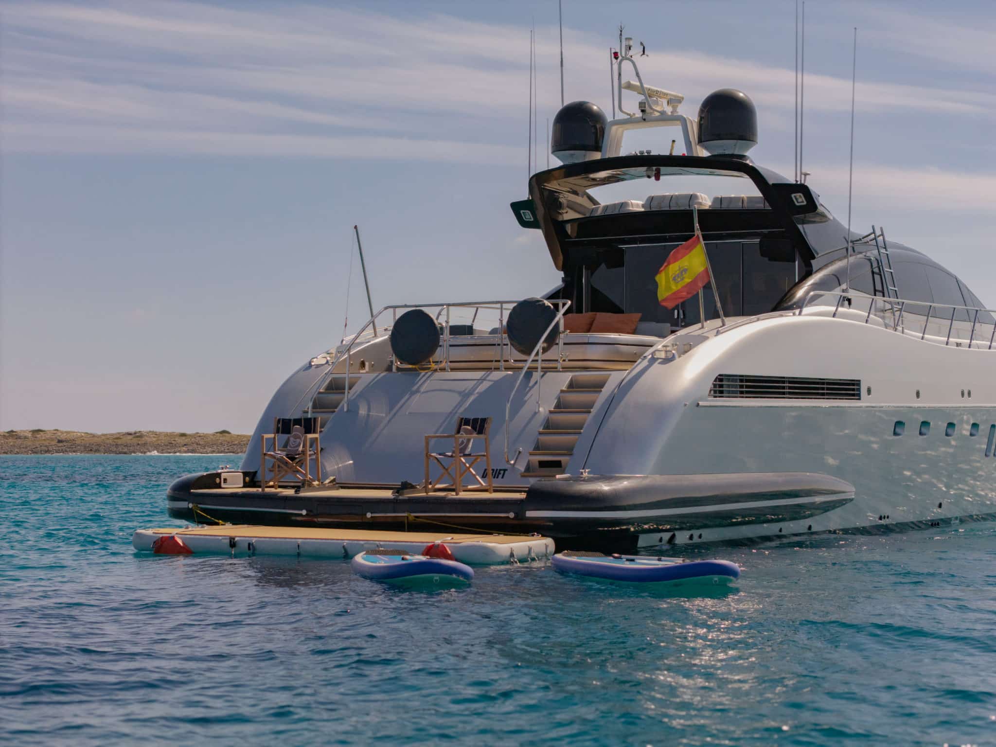 A charter on DRIFT is about energy, style, and indulgence. With thrilling performance, premium amenities, and vibrant social spaces, every moment on board feels special. DRIFT is the ideal yacht for guests seeking a dynamic yet luxurious Ibiza experience.