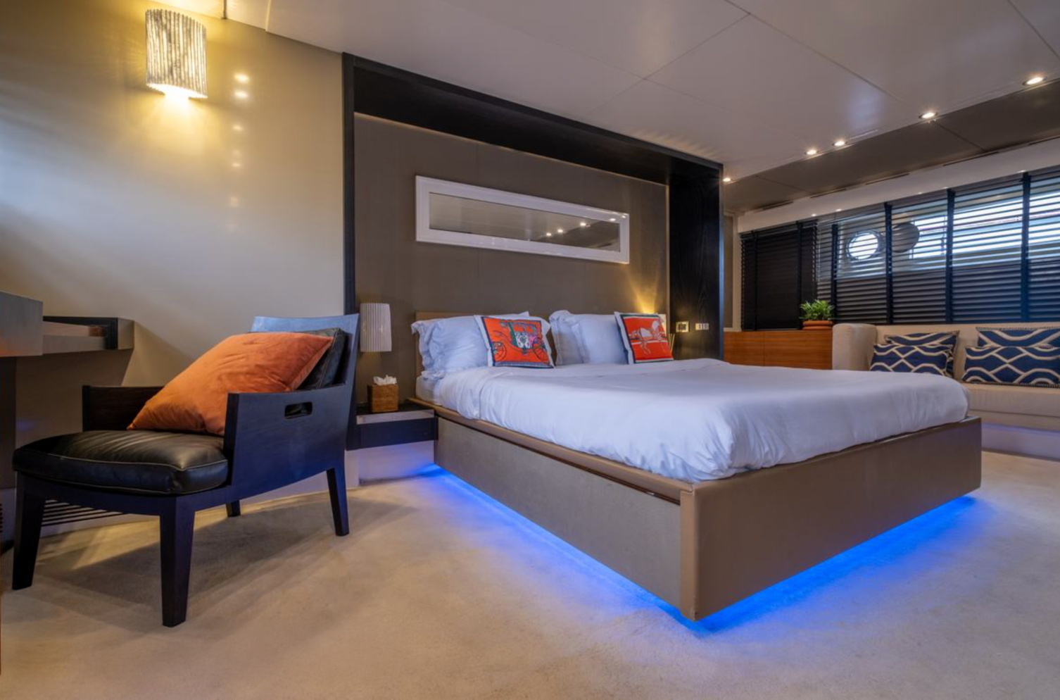 Inside, FUNKY TOWN showcases a beautifully crafted interior with elegant finishes and a contemporary feel. The accommodation includes a full-beam master suite, a VIP cabin, a double cabin, and a twin cabin with an additional Pullman berth, each with en-suite facilities. The layout is thoughtfully arranged to provide privacy, comfort, and a relaxed atmosphere.