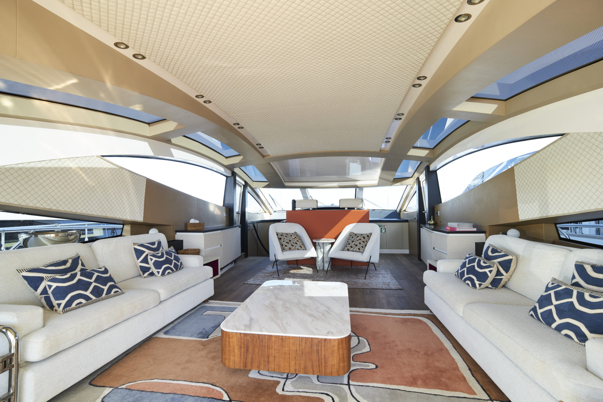 Outdoor living aboard FUNKY TOWN is designed for pure enjoyment. Spacious deck areas invite guests to soak up the sun, while inviting lounge spaces set the scene for social gatherings. The high-end Void sound system adds a vibrant soundtrack to days spent cruising Ibiza’s coastline.