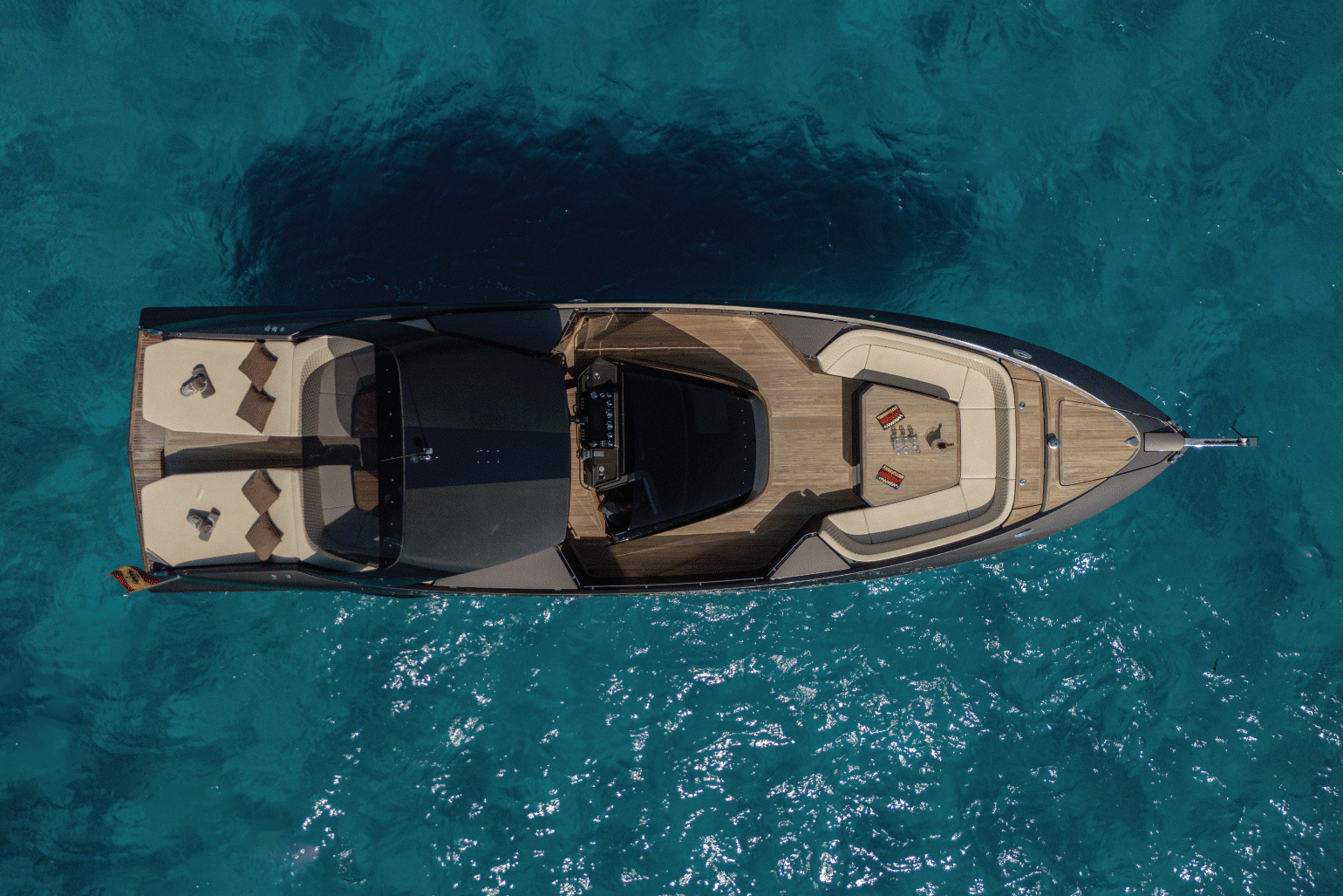Outdoor living aboard HAILEY SU is designed for enjoying the Mediterranean in style. The open deck lounge provides generous space to unwind, while the sleek T-top offers welcome shade. Whether socializing with friends or relaxing between swim stops, the layout is perfect for easy enjoyment.