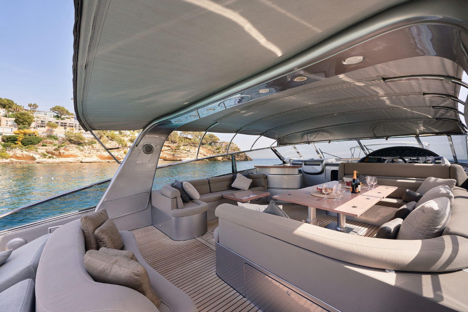 Outdoor areas are designed for enjoying the Mediterranean lifestyle. Expansive decks provide space for sunbathing, relaxing, and socialising, while outdoor dining areas allow guests to enjoy meals with open sea views. Her sporty design and impressive cruising speeds allow guests to cover more ground and make the most of their time on the water.