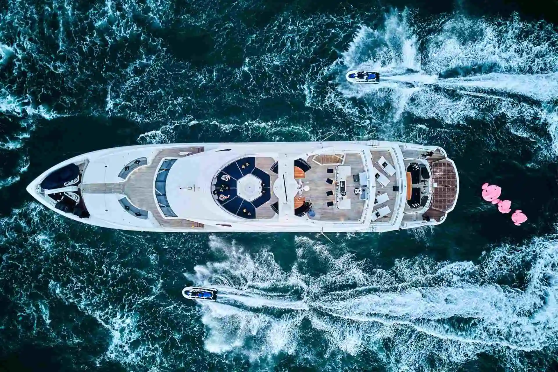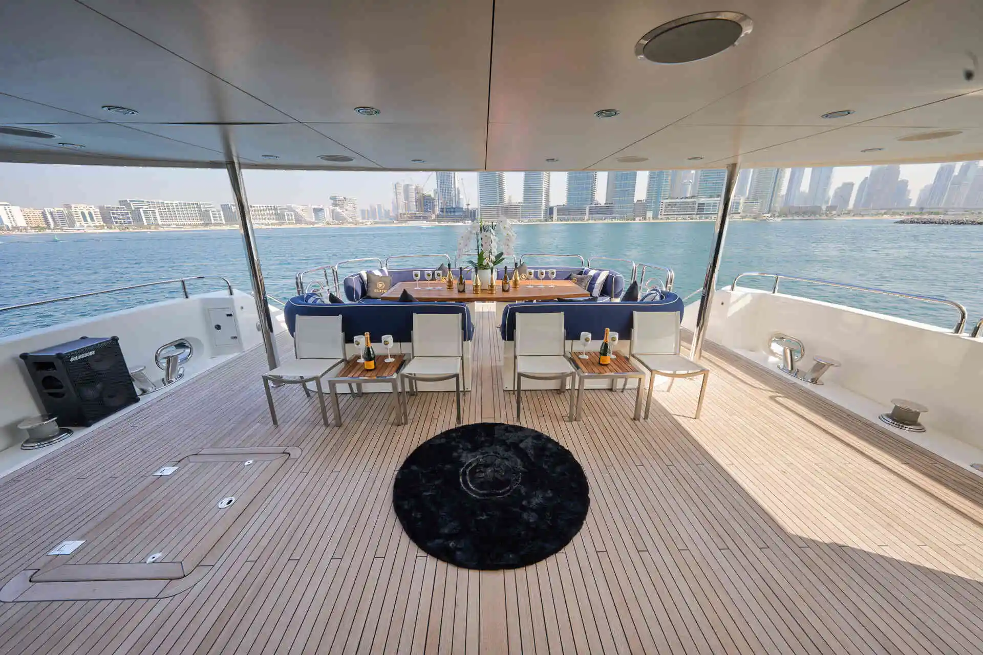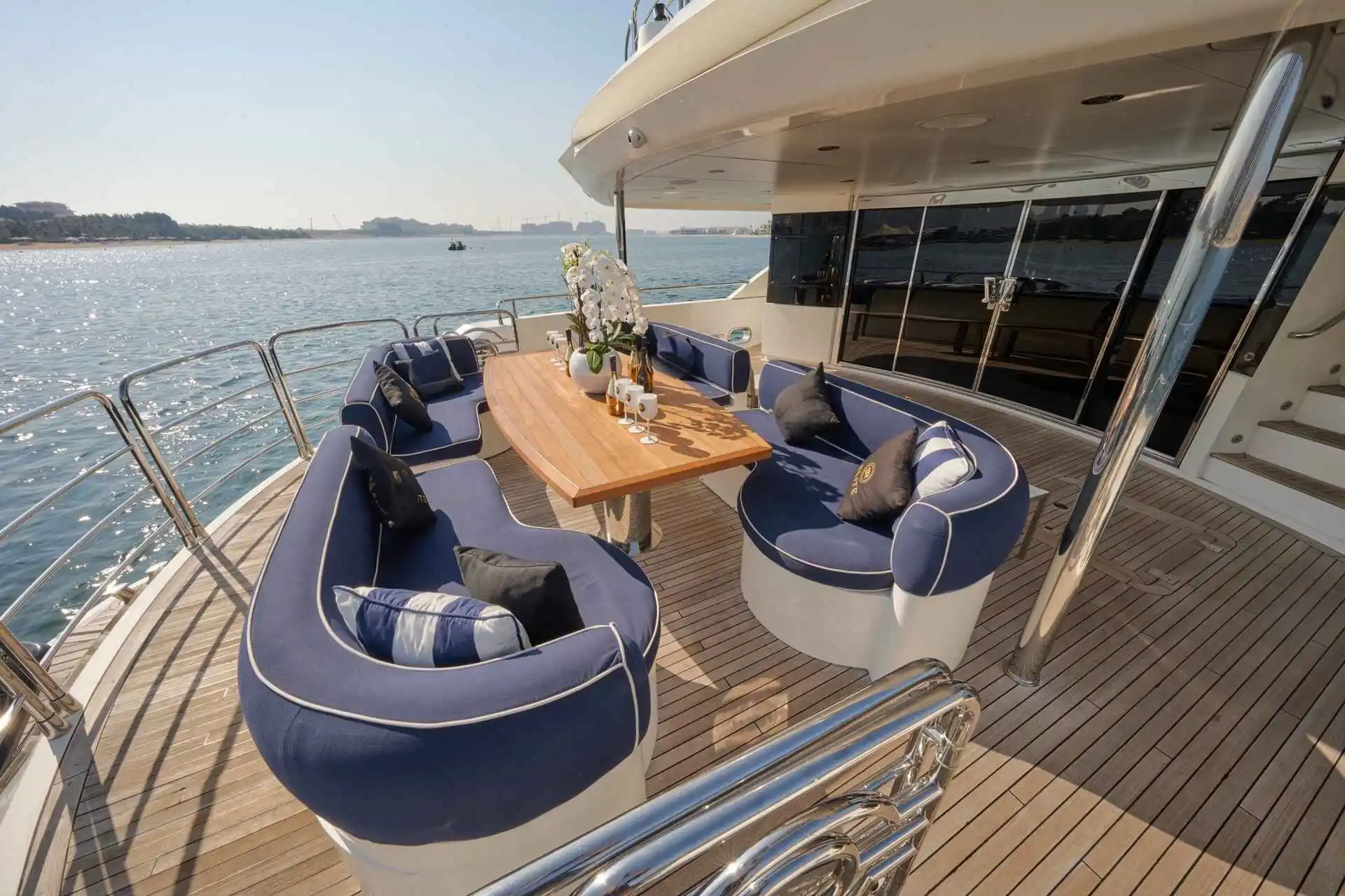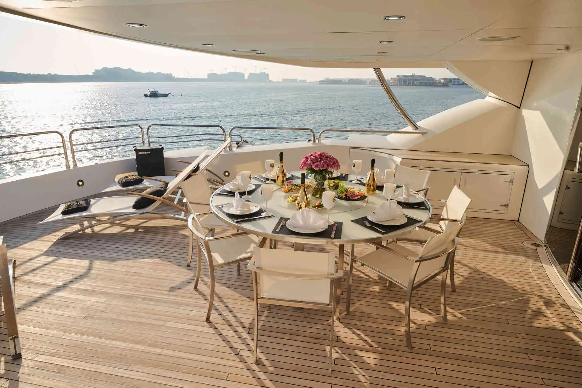 Outdoor living is a highlight on board MONACO 140, with expansive deck areas that are ideal for sunbathing, alfresco dining, or enjoying panoramic views of Dubai’s skyline. Whether cruising from Palm Jumeirah to Dubai Marina or hosting a refined celebration at sea, this yacht offers space and amenities that make every moment enjoyable.