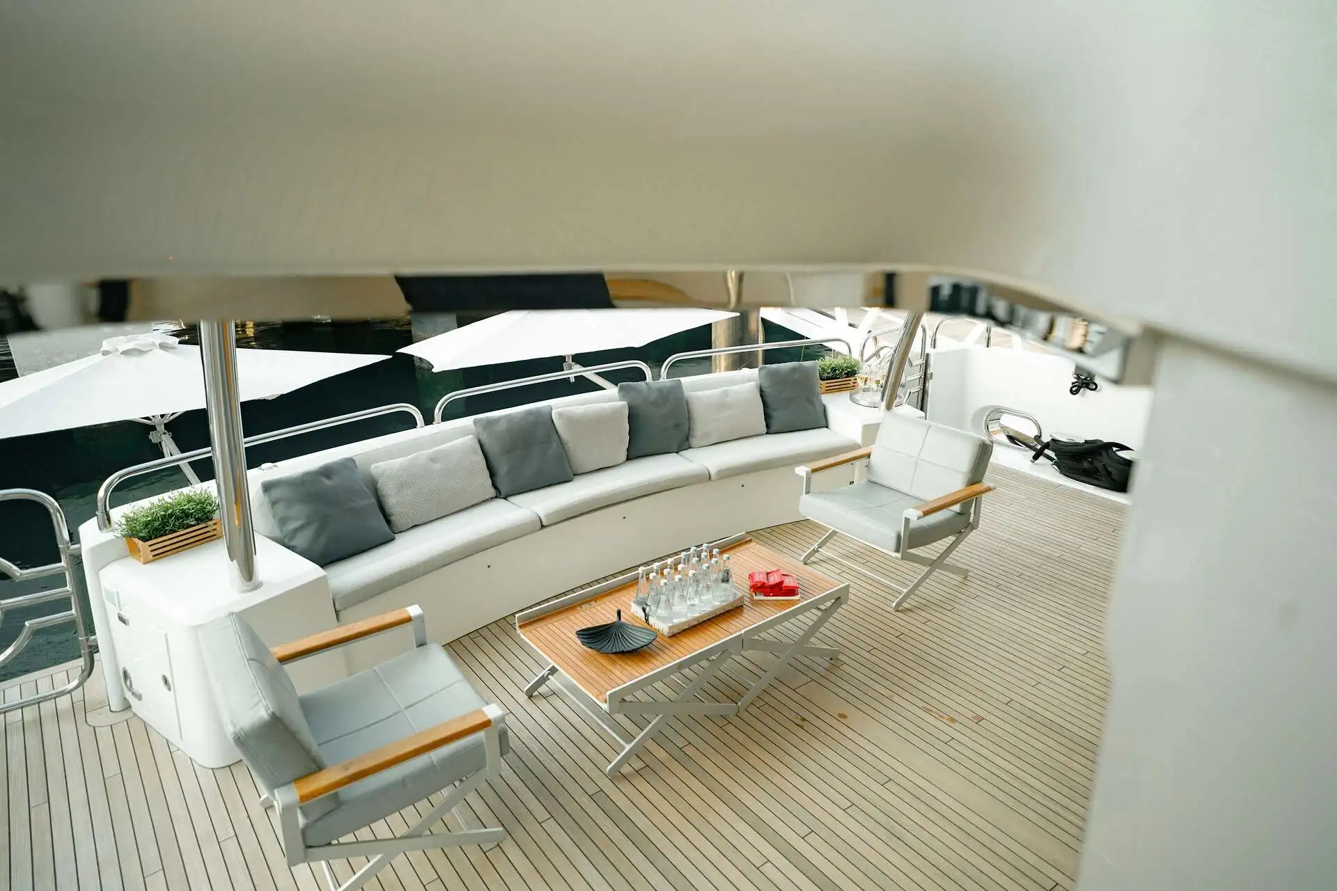 Outdoor living is one of ENCORE’s strengths. The aft deck offers a welcoming space for outdoor dining, while generous sunbathing areas allow guests to enjoy the sunshine and panoramic views. Whether anchored off a scenic coastline or cruising along the city skyline, the deck areas are ideal for social gatherings or quiet moments of relaxation.