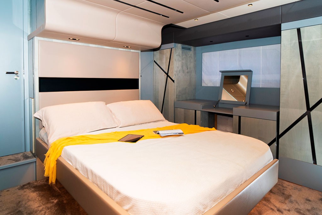 Inside, NEXT features a refined and comfortable interior arranged across a master cabin and a guest cabin. These spaces provide a cool and private retreat to rest and recharge during the day. The atmosphere feels modern, calm, and thoughtfully designed for onboard comfort.