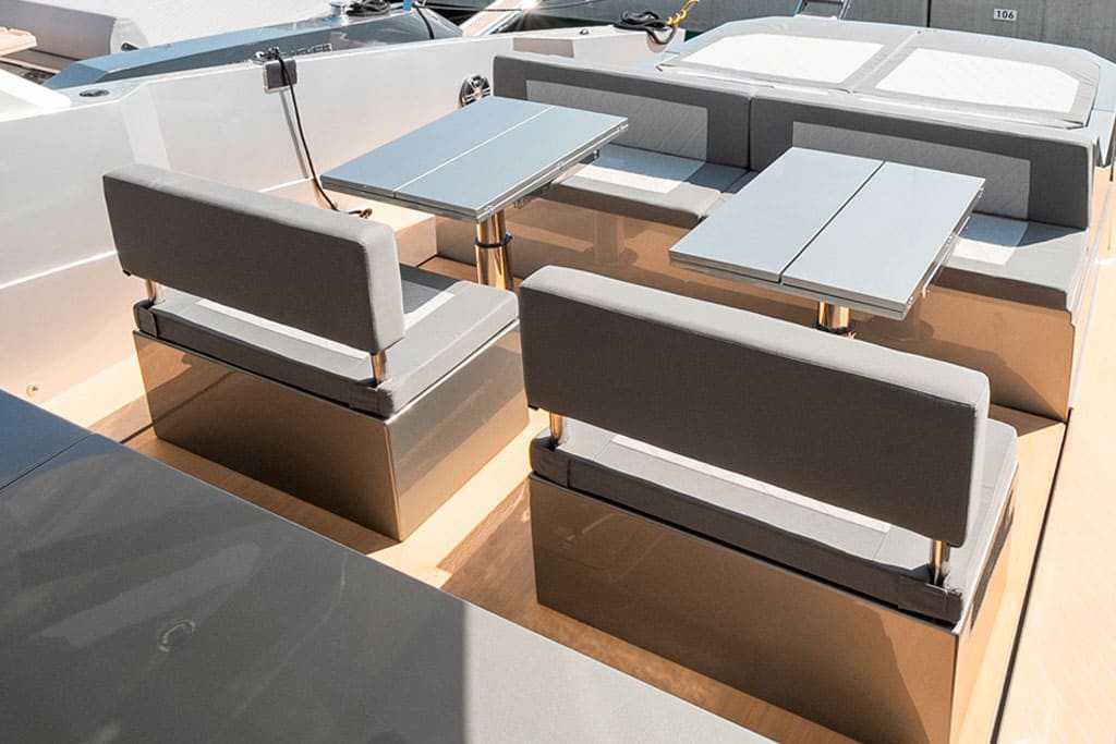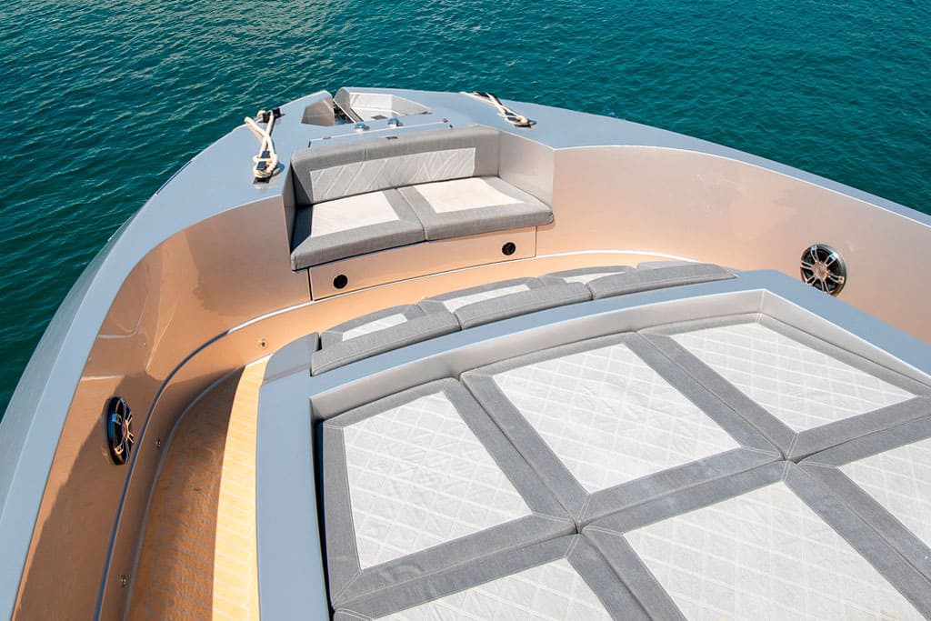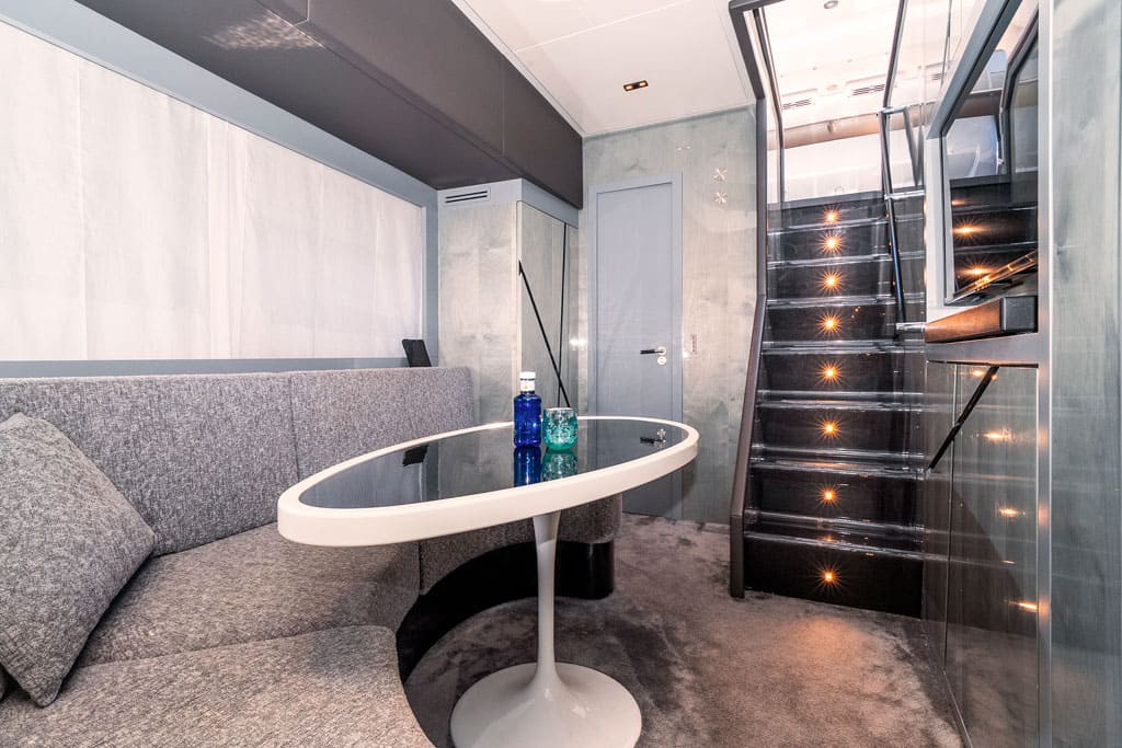Outdoor living aboard NEXT is where she truly excels. Expansive sunbathing areas at the bow and stern invite guests to unwind, while the shaded aft deck creates a perfect setting for alfresco dining. The hydraulic swim platform allows easy access to the sea, enhancing every swim stop.