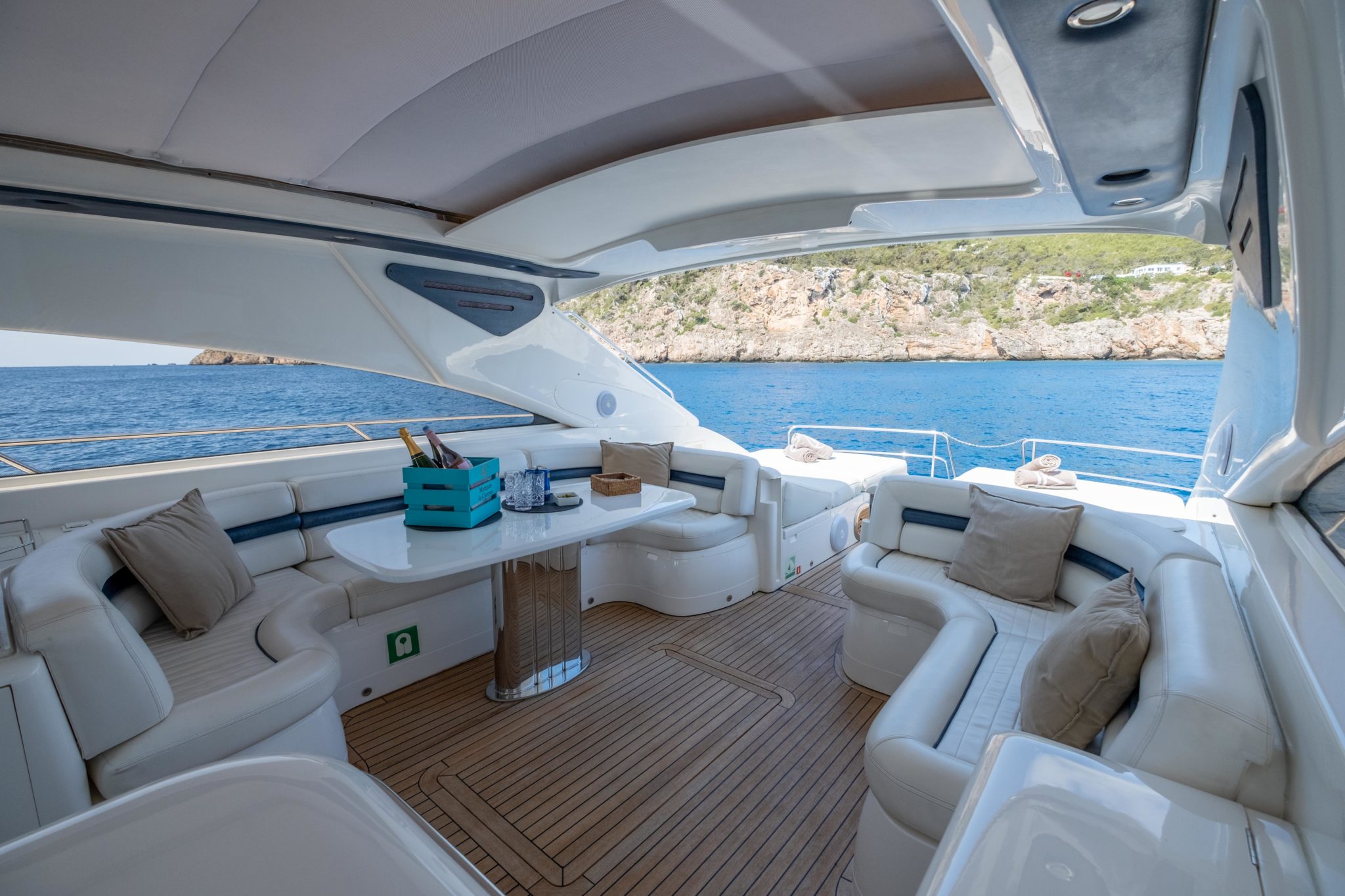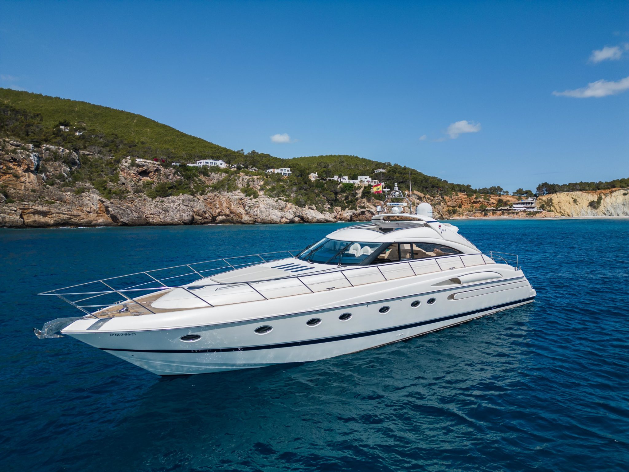 PRINCESS JULIET is a sleek Princess V65 that perfectly reflects the shipyard’s reputation for elegance and performance. With her streamlined profile and refined detailing, she offers a stylish and dynamic way to explore Ibiza’s coastline.