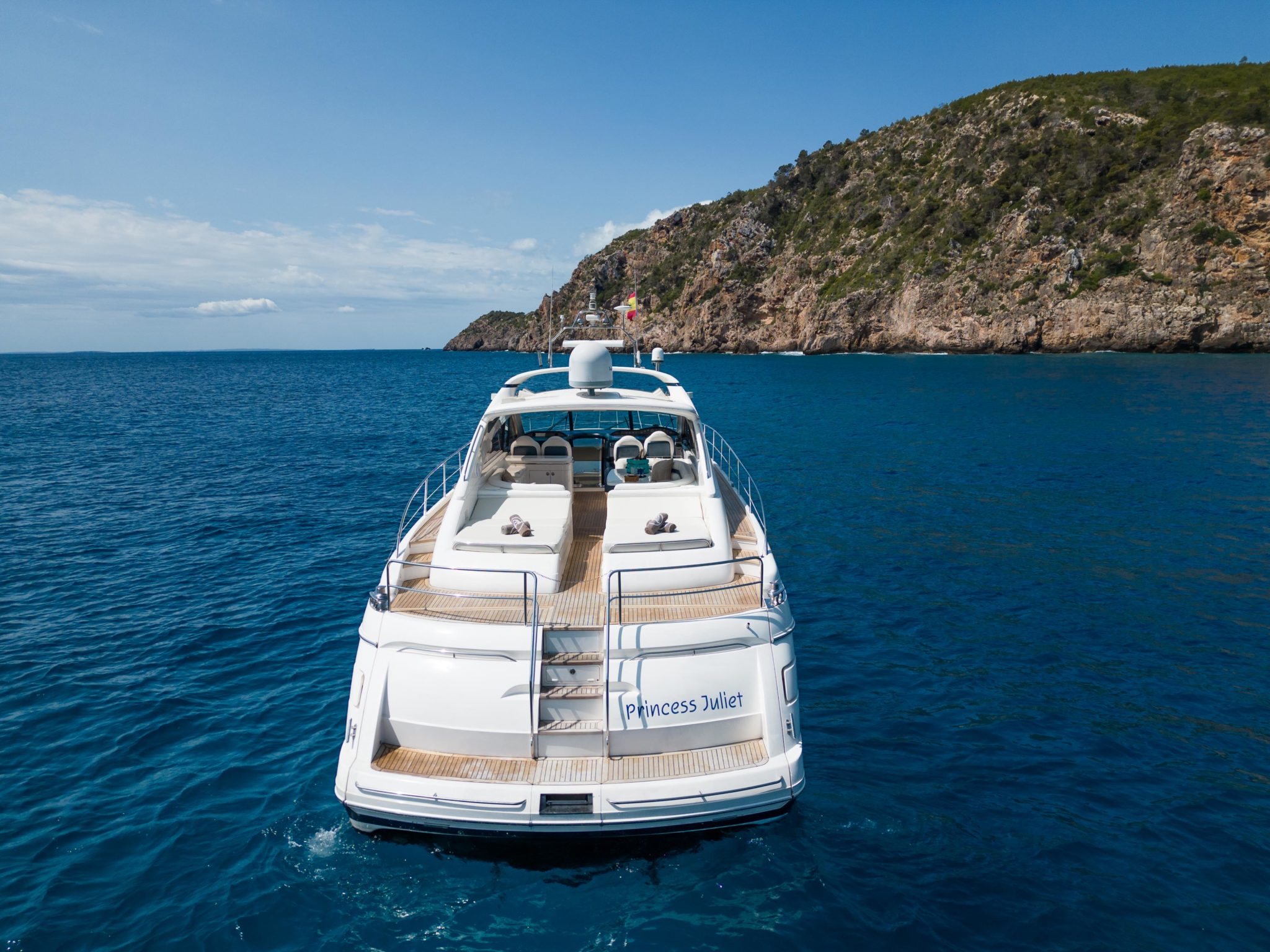 A charter on PRINCESS JULIET is about effortless enjoyment and stylish cruising. With her spacious deck areas and comfortable living spaces, she is perfect for discovering Ibiza’s beautiful coves and nearby Formentera.