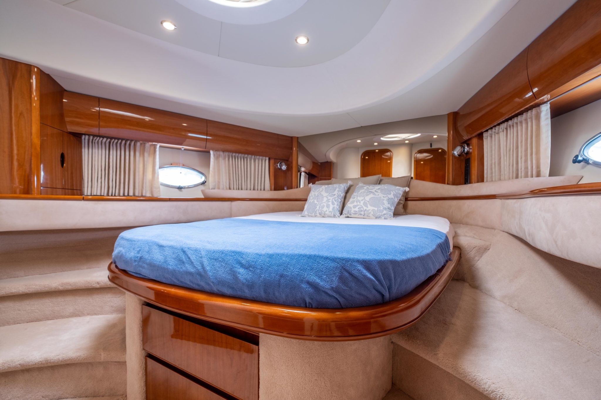 Inside, PRINCESS JULIET features a bright and contemporary interior designed for comfort at sea. The accommodation is arranged across three cabins, including a Master cabin, a VIP cabin, and a twin cabin with two single beds, all complemented by well-appointed bathrooms.
