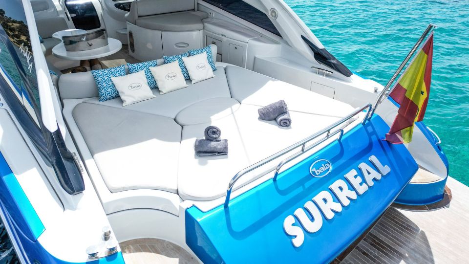 SURREAL is a sporty Baia 54 motor yacht offering a high-performance charter experience in Ibiza. Combining sleek Italian design with impressive speed, she is ideal for guests looking to explore the island efficiently while enjoying comfort on board.
