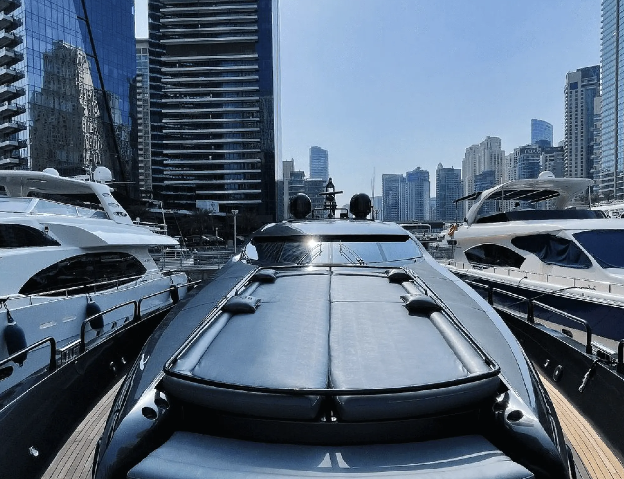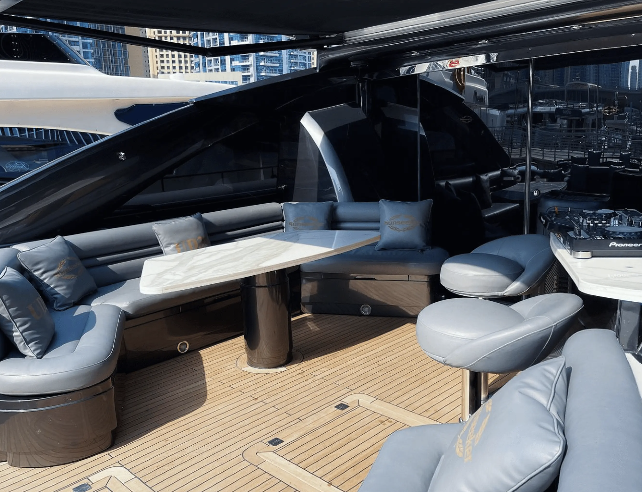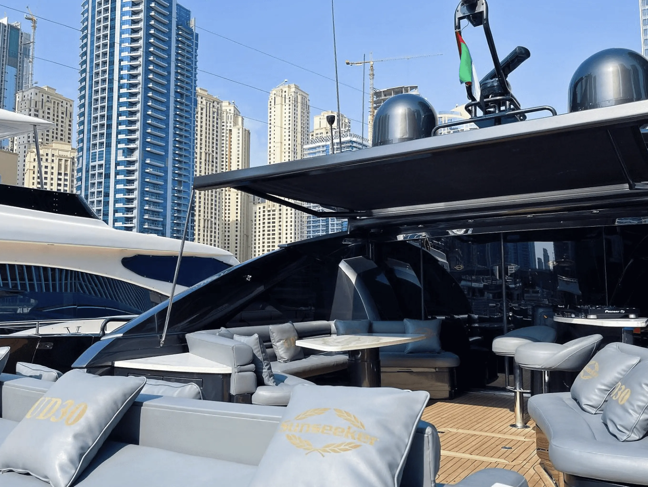 SUNSEEKER PREDATOR 95 UD30 delivers an immediate sense of power and prestige, turning heads with her sleek silhouette and dynamic lines. Designed for those who appreciate refined luxury and high performance, she offers an exclusive setting for unforgettable days on Dubai’s glittering waters. From the moment you step on board, the atmosphere is sophisticated, vibrant, and effortlessly elegant.