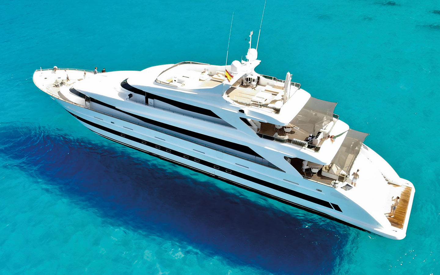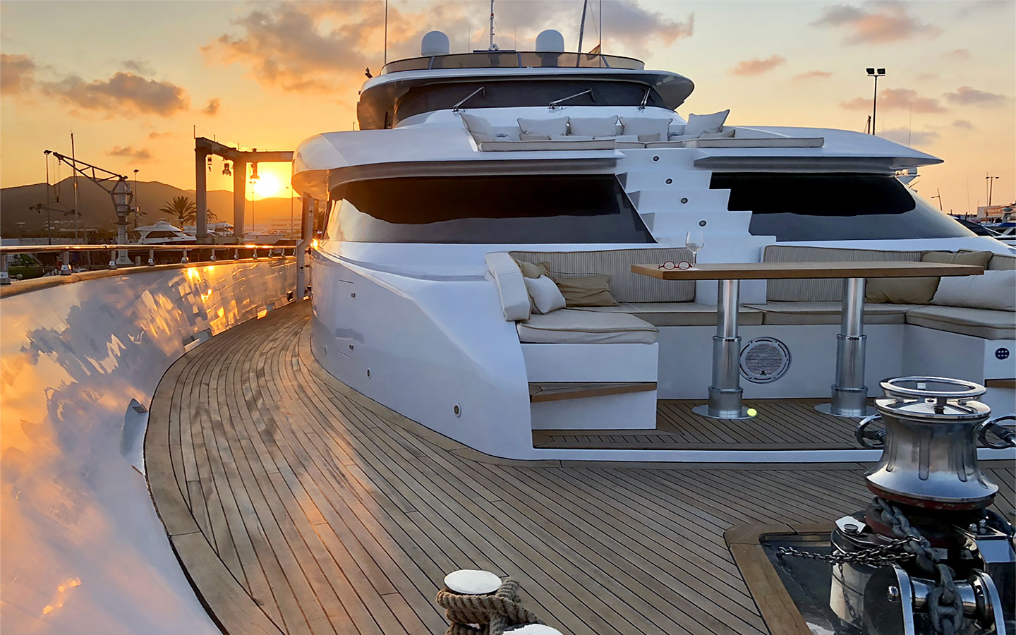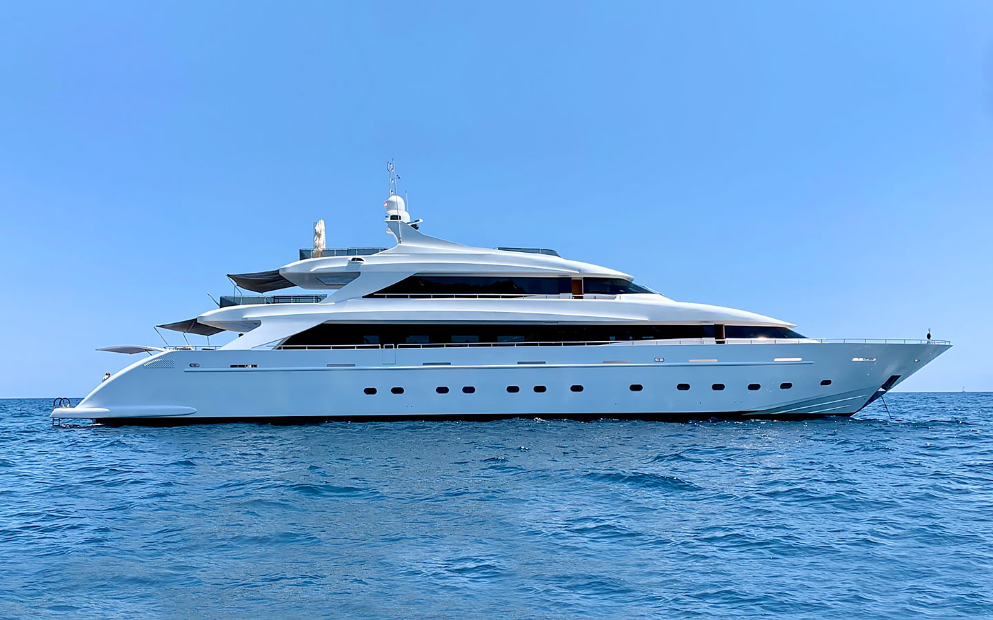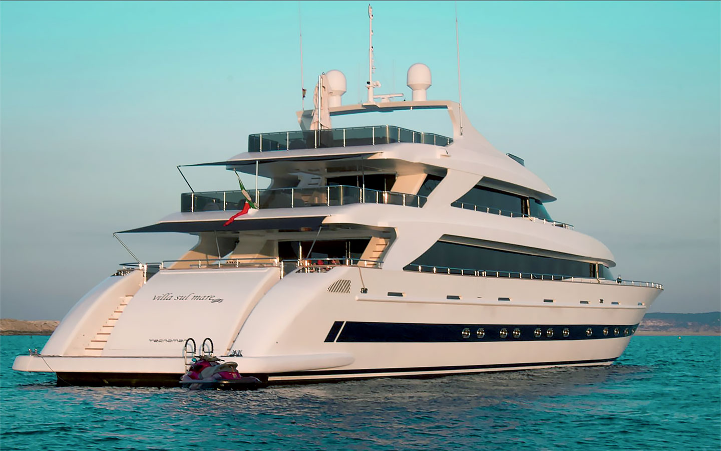 VILLA SUL MARE is a luxurious 44-metre Tecnomar motor yacht and one of the most prestigious charter yachts available in Ibiza. Built through a collaboration between the Italian shipyards Tecnomar and Admiral, she was crafted with exceptional attention to detail and has been carefully maintained and updated over the years to ensure a refined onboard experience.