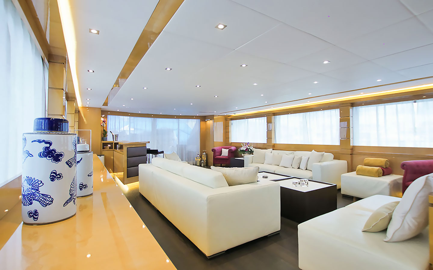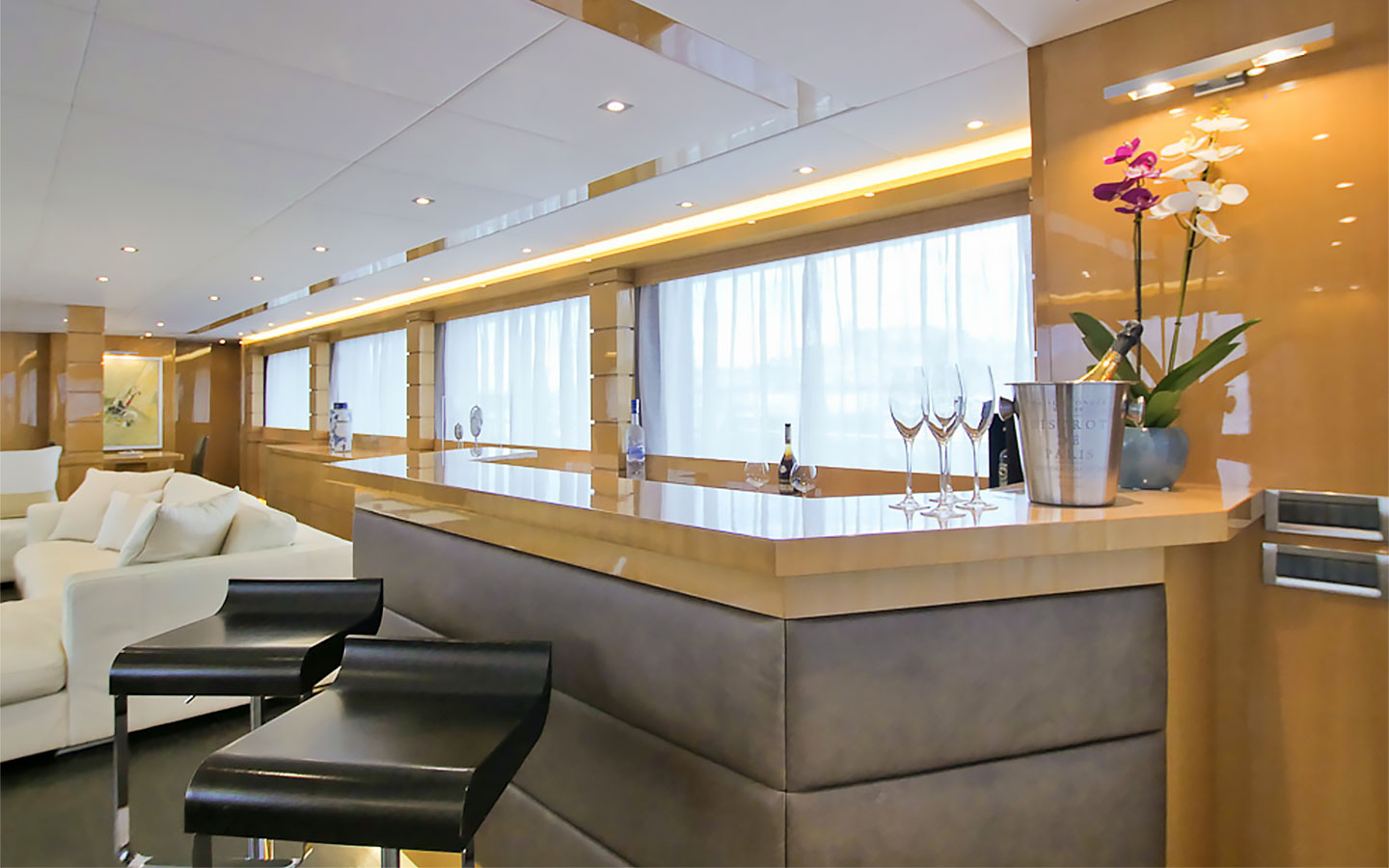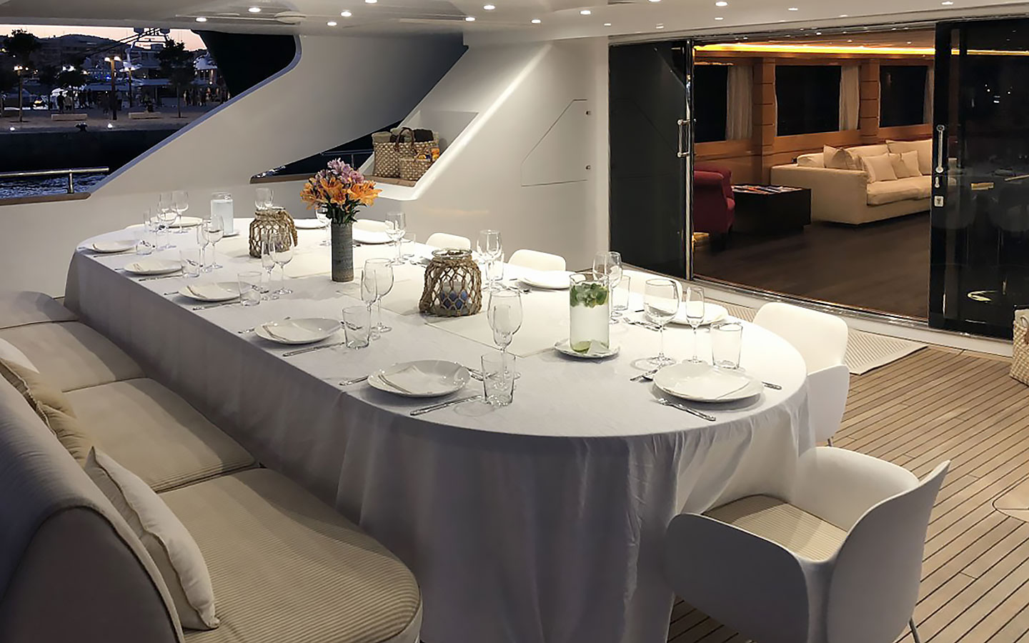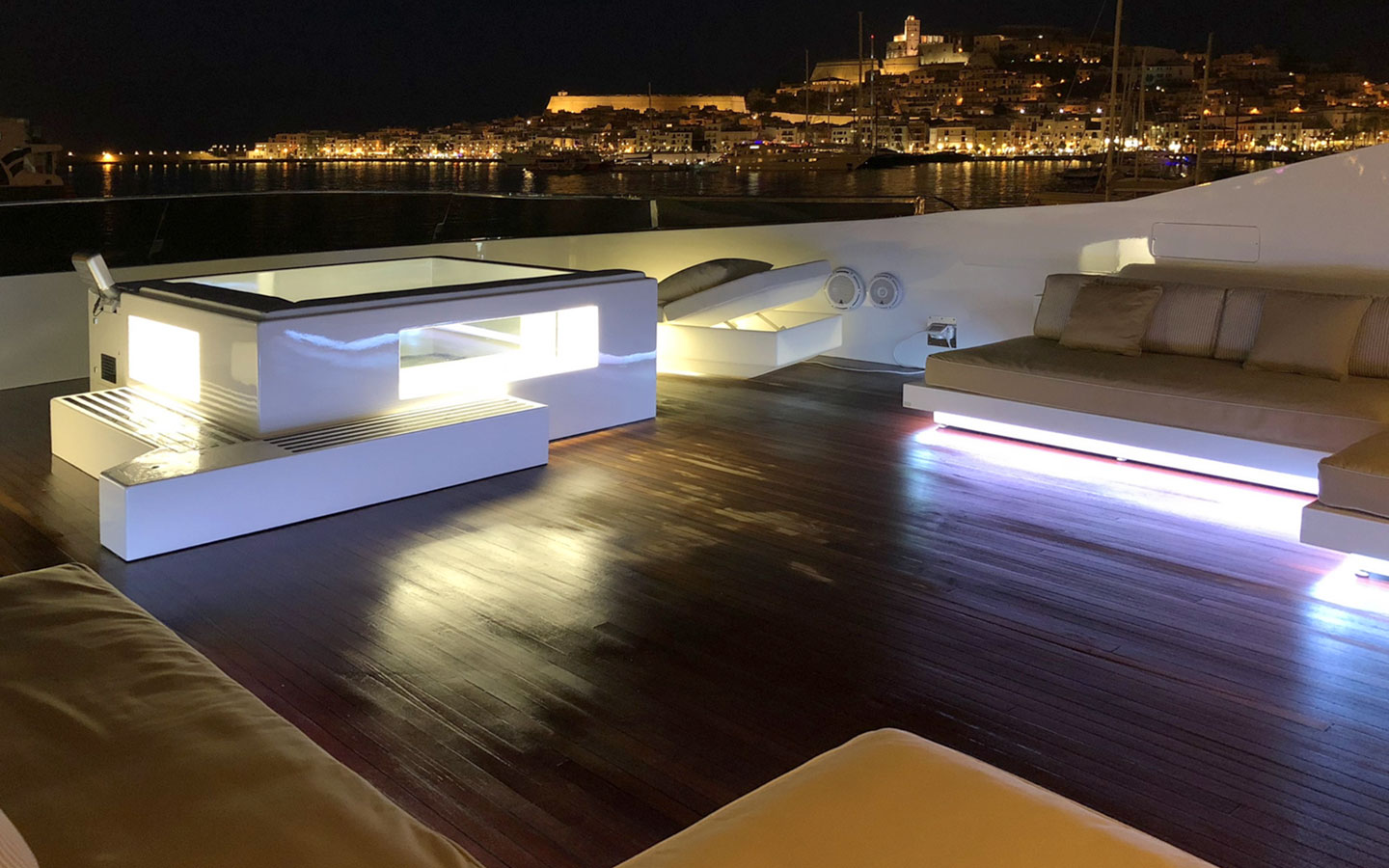 VILLA SUL MARE is a luxurious 44-metre Tecnomar motor yacht and one of the most prestigious charter yachts available in Ibiza. Built through a collaboration between the Italian shipyards Tecnomar and Admiral, she was crafted with exceptional attention to detail and has been carefully maintained and updated over the years to ensure a refined onboard experience.