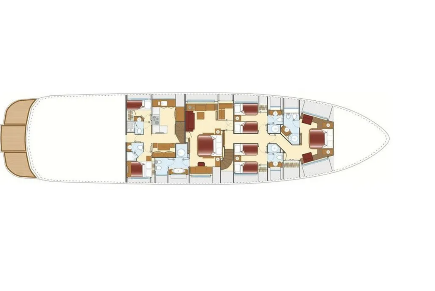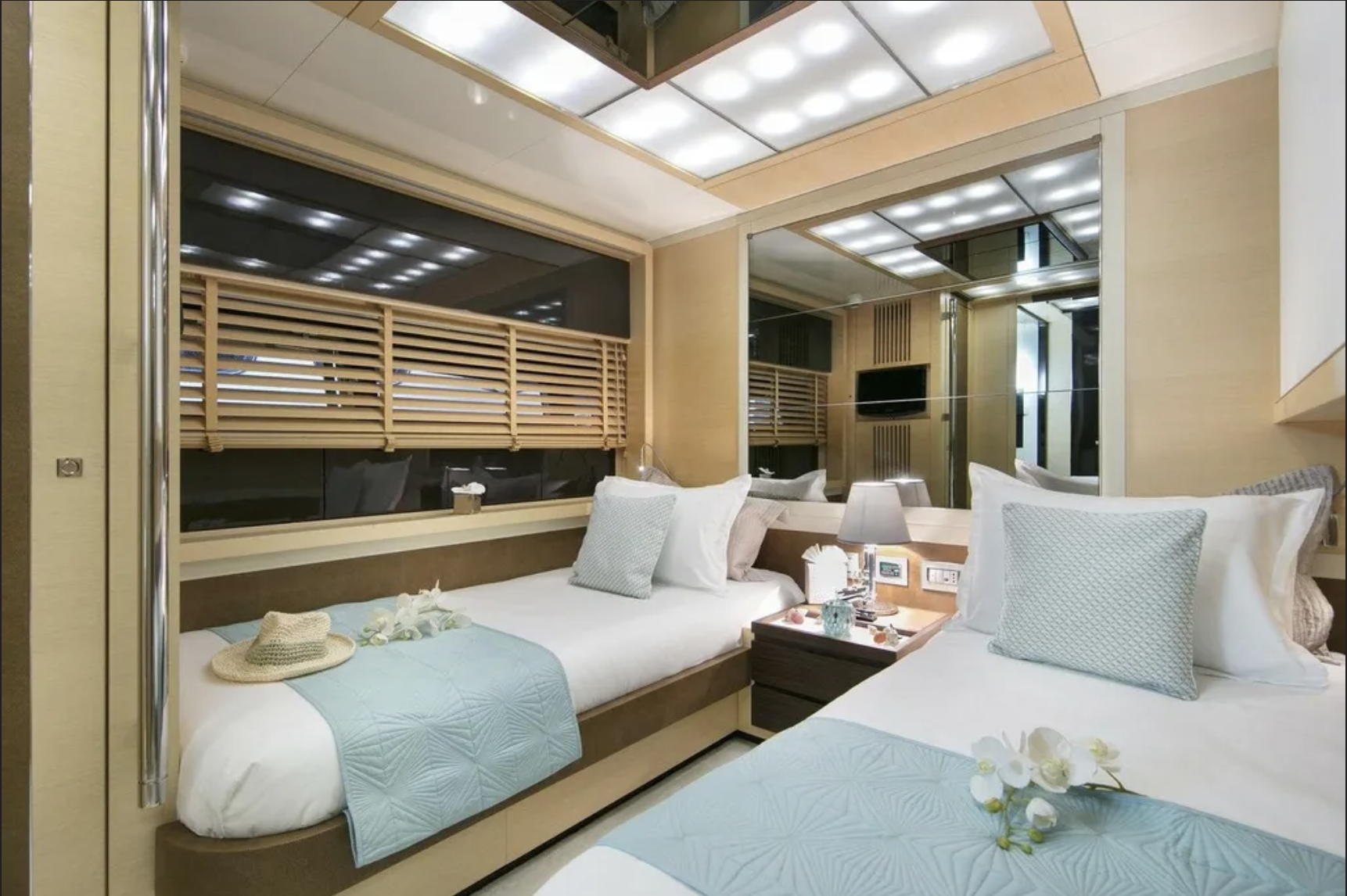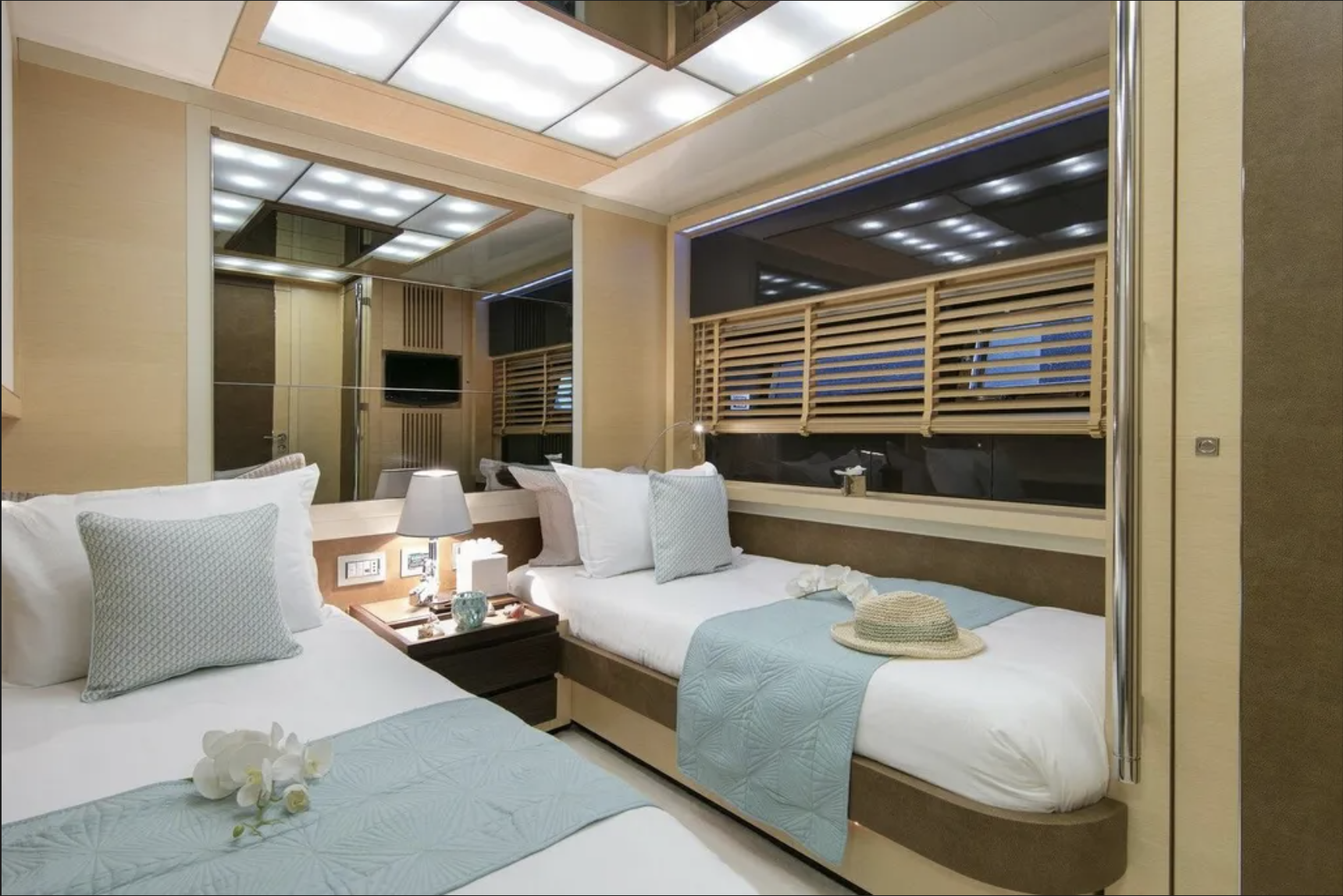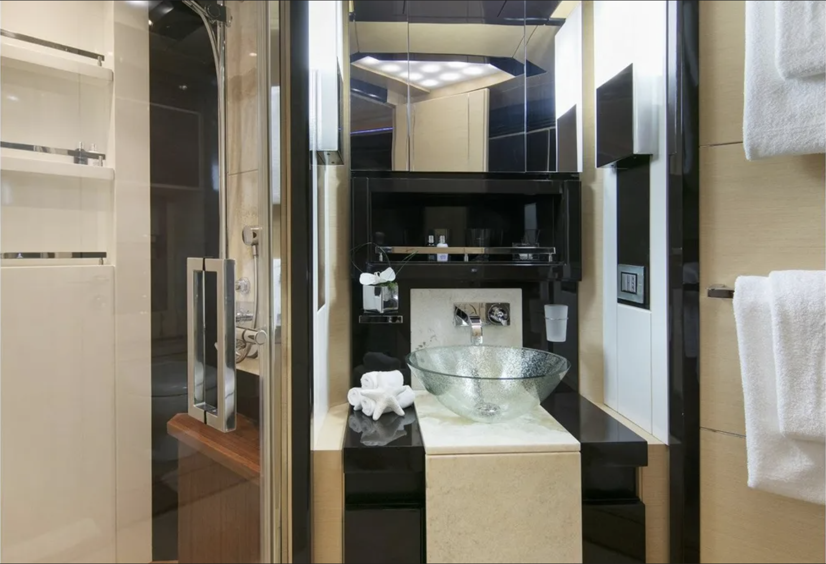 Fully reversible hot/cold air-conditioning system with fan coils in all zones (compressors & pumps located in engine room to reduce noise)