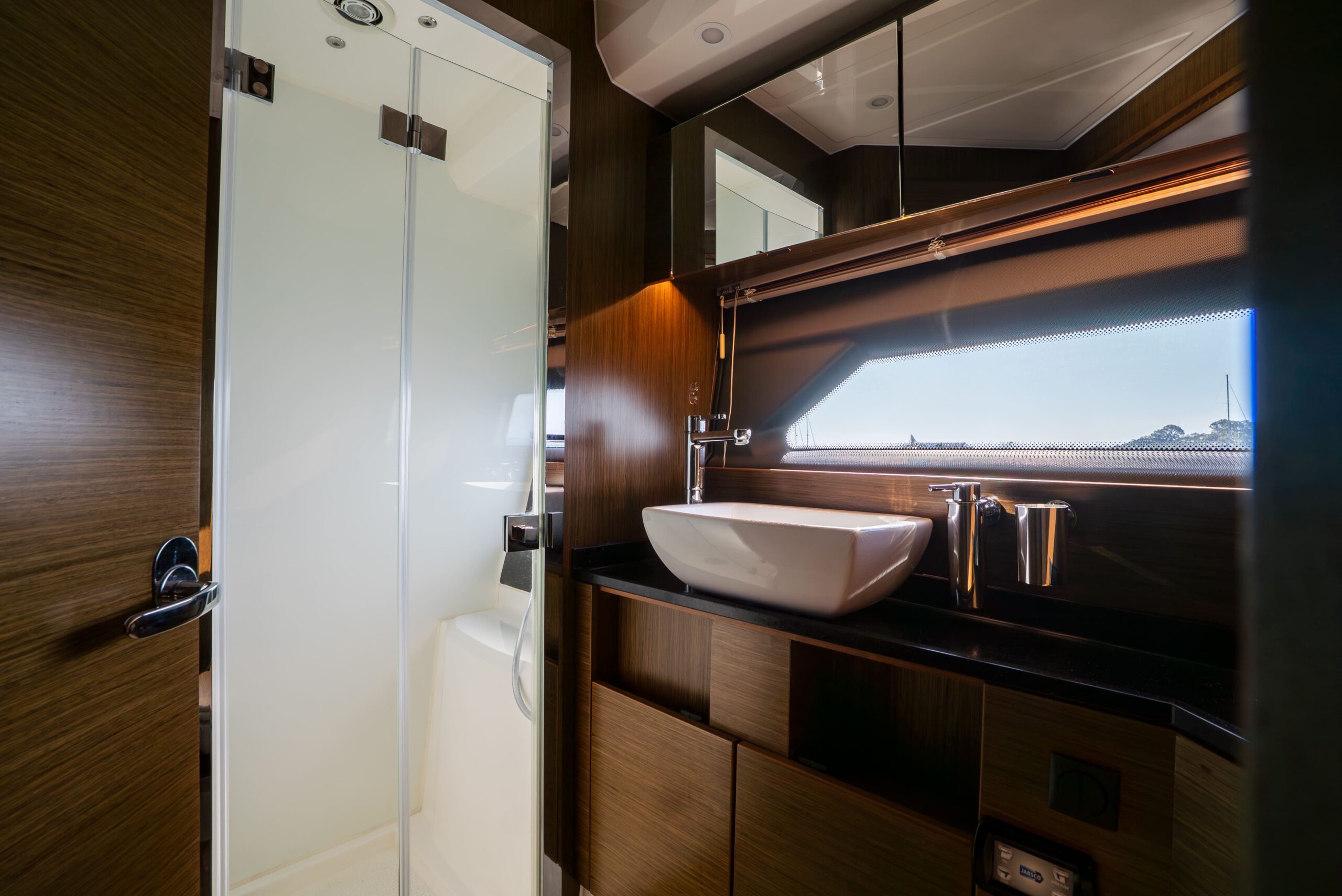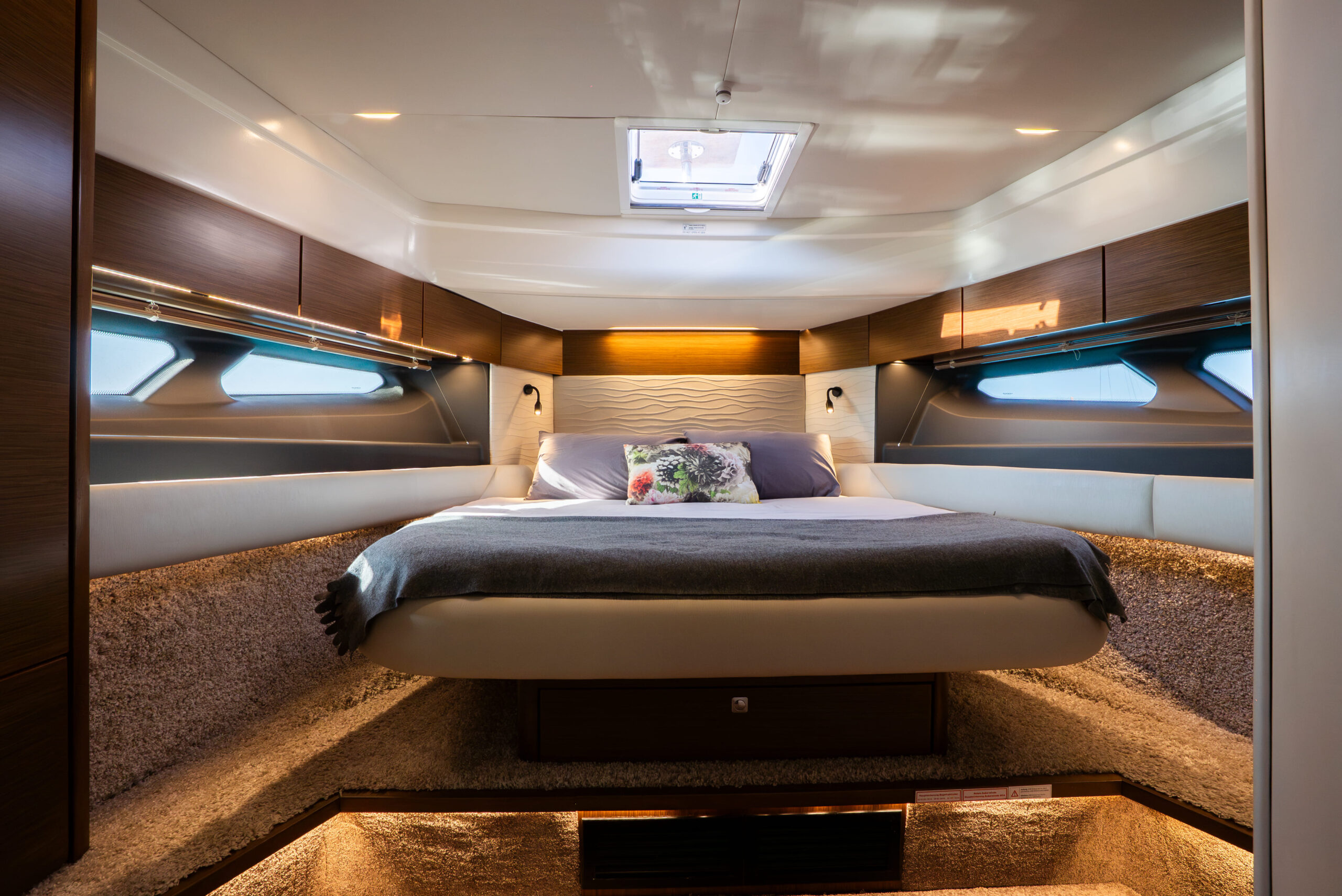 - Lighting: underwater lights, aft canopy docking lights, low-level LED, navigation, dimmable interior lighting