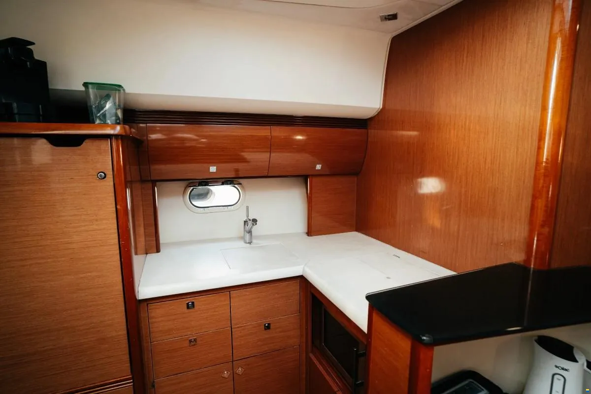 In 2026, the yacht underwent a comprehensive upgrade programme focused on both performance and presentation. The hull was lifted, treated, and finished with professional antifouling, while all anodes were replaced. The IPS propellers were protected with high-quality coating, enhancing efficiency and durability.