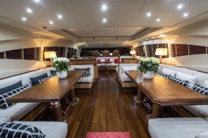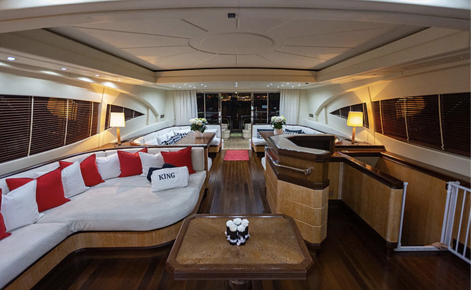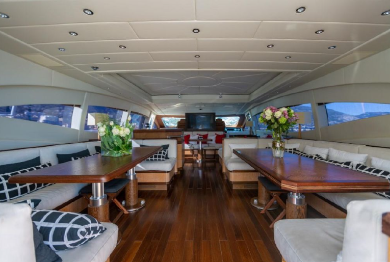 Aft Deck : 4xBOSEspeaker Main saloon : Audio system , 50′ PlasmaTV, DVD, Ipod dock and surround system
