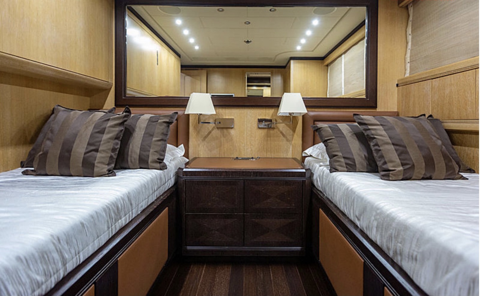 VIP cabins : 30′ TV, DVD and iPod dock and surround system