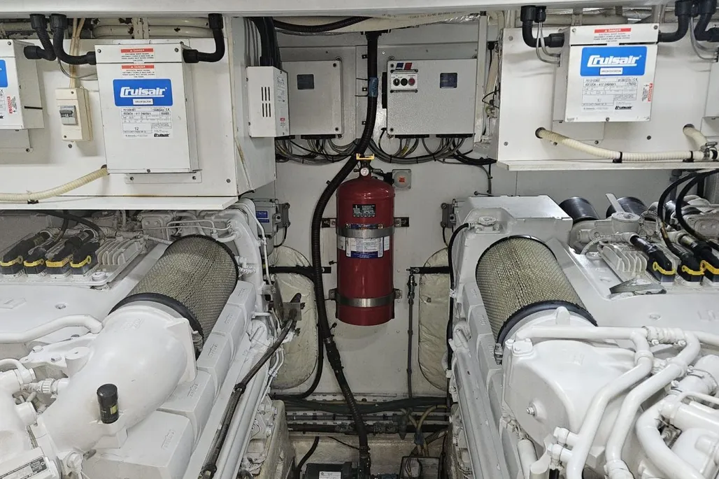 Powered by twin MTU V10 2000 M92 engines (1380 hp each), recently serviced, it delivers impressive performance combined with reliability and smooth cruising.