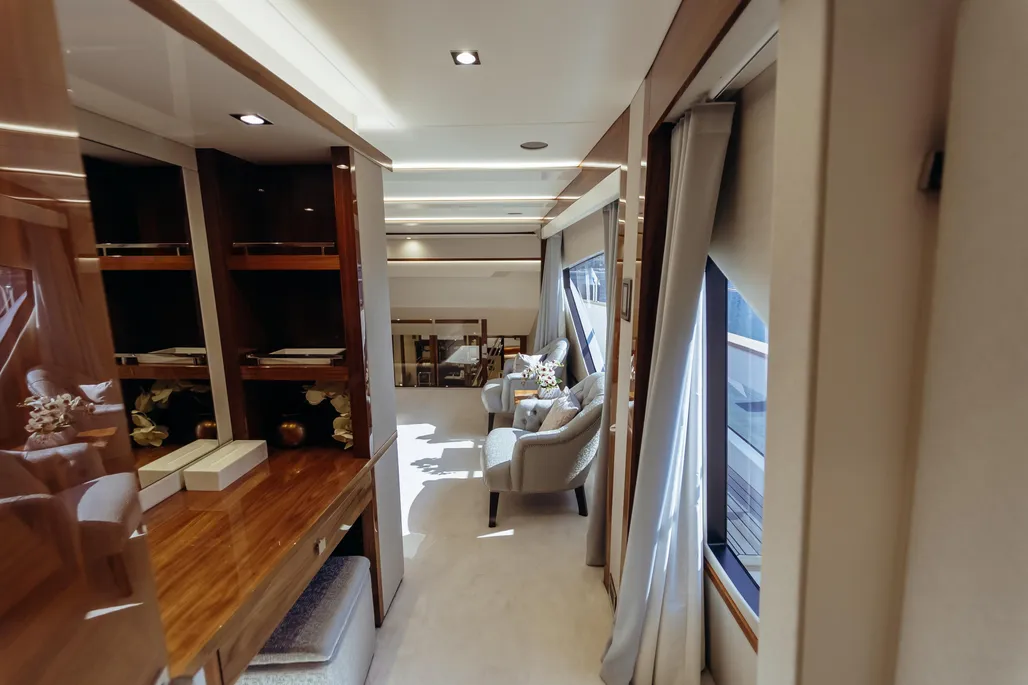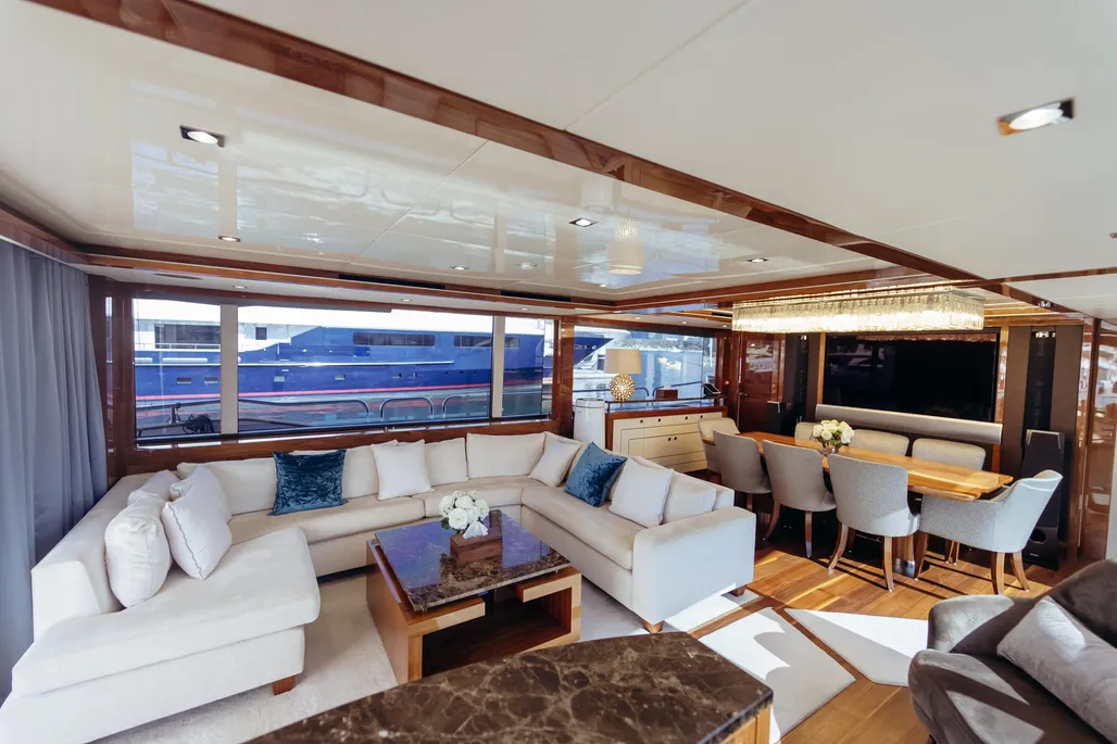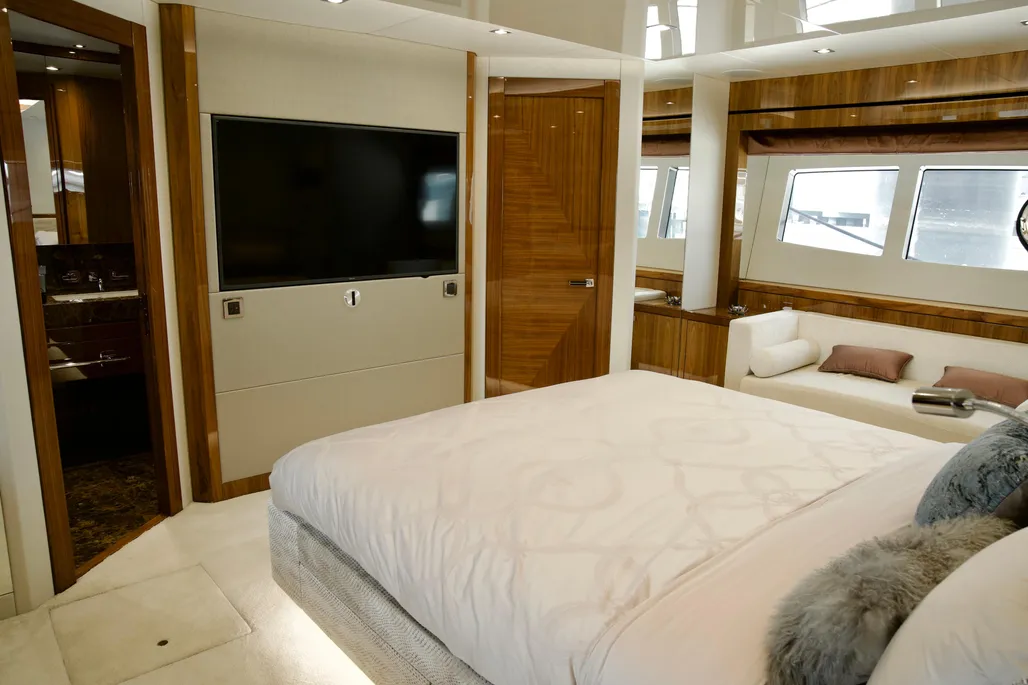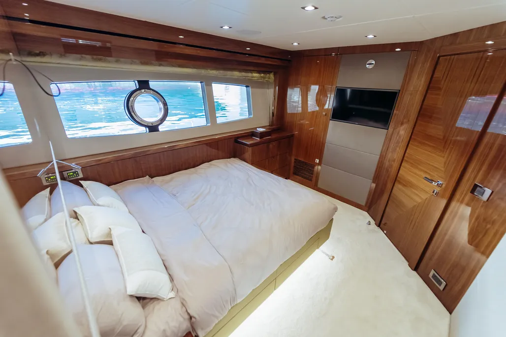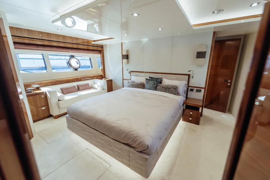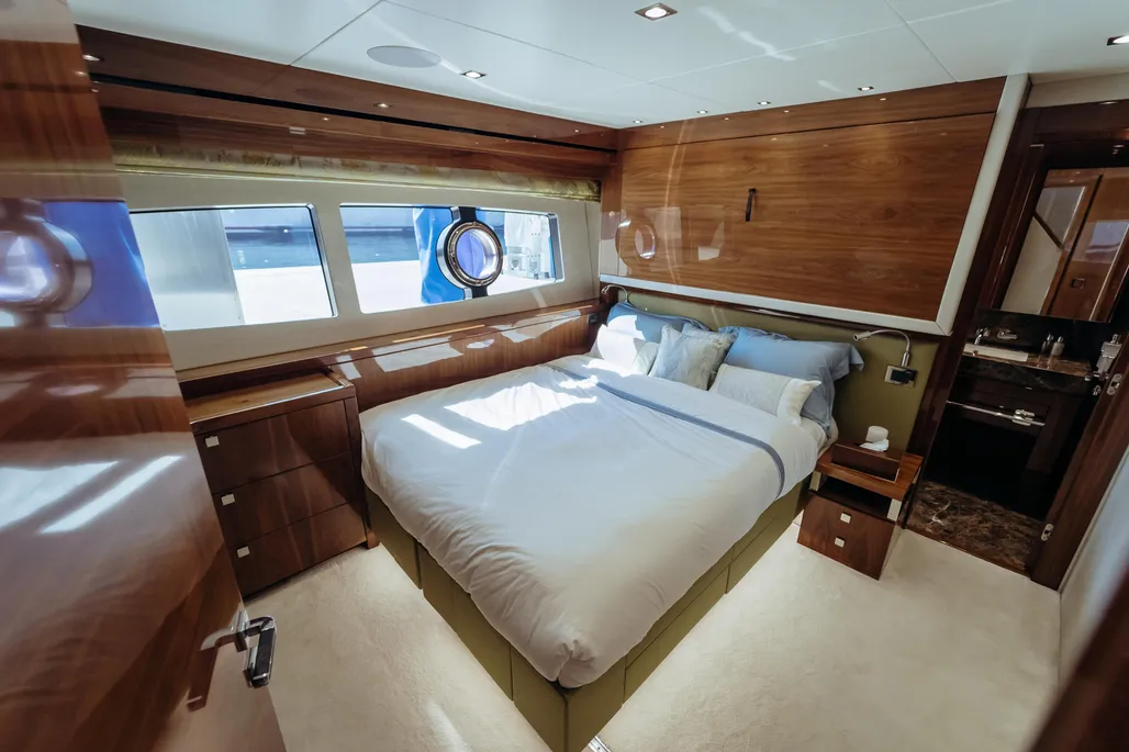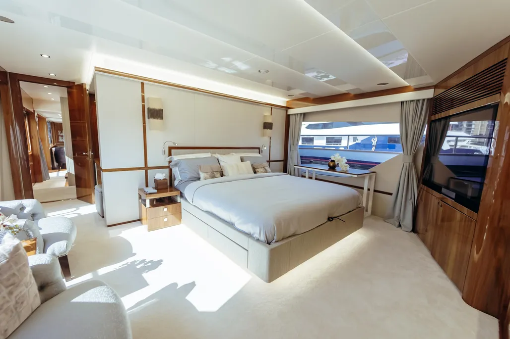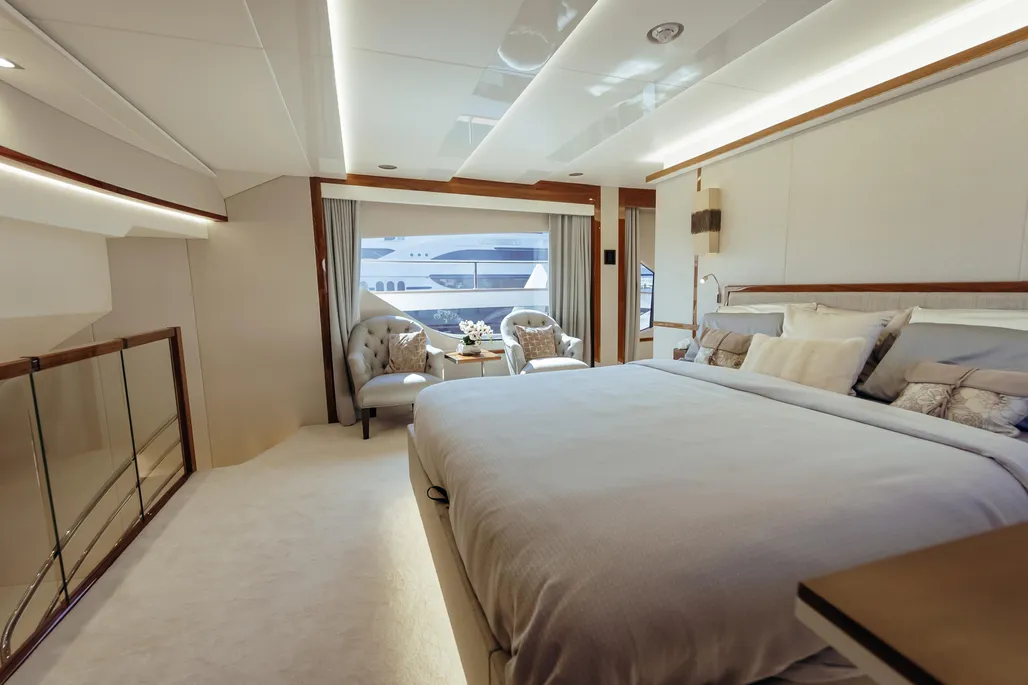 - 2 twin crew mess areas with double bunks, wardrobes, L-shaped seating, Fusion AV system