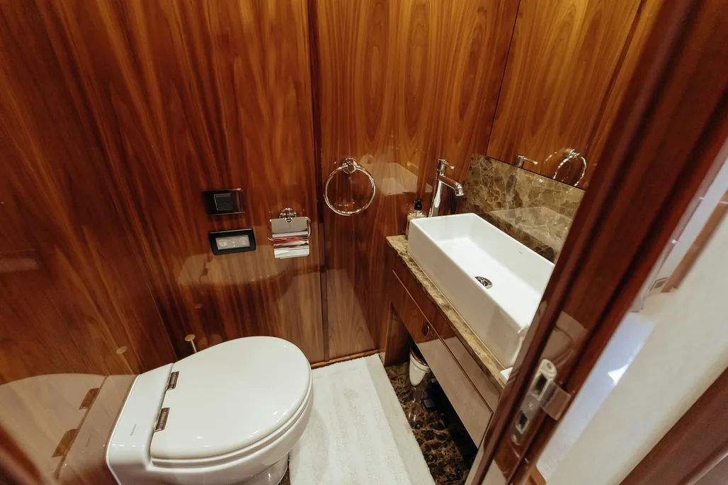 - Guest Cabins 1 & 2: convertible twin/double beds, pullman bunks, en-suite rain showers, in-ceiling speakers, TVs
