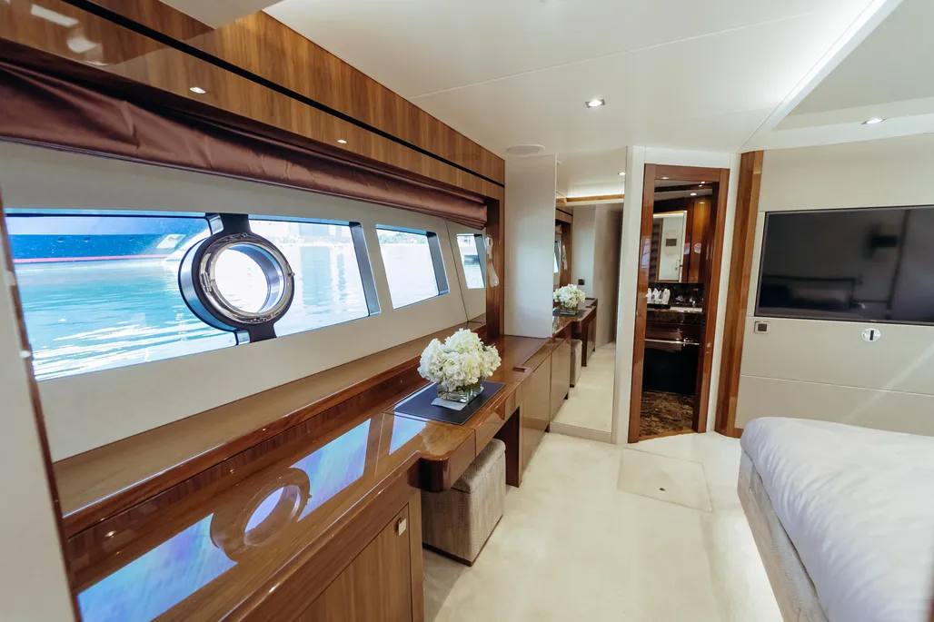 - VIP cabin with island berth, full walk-in wardrobe, en-suite with rain shower and his & hers sinks