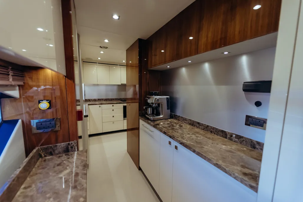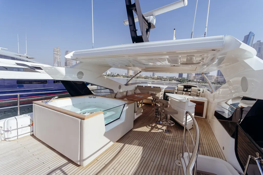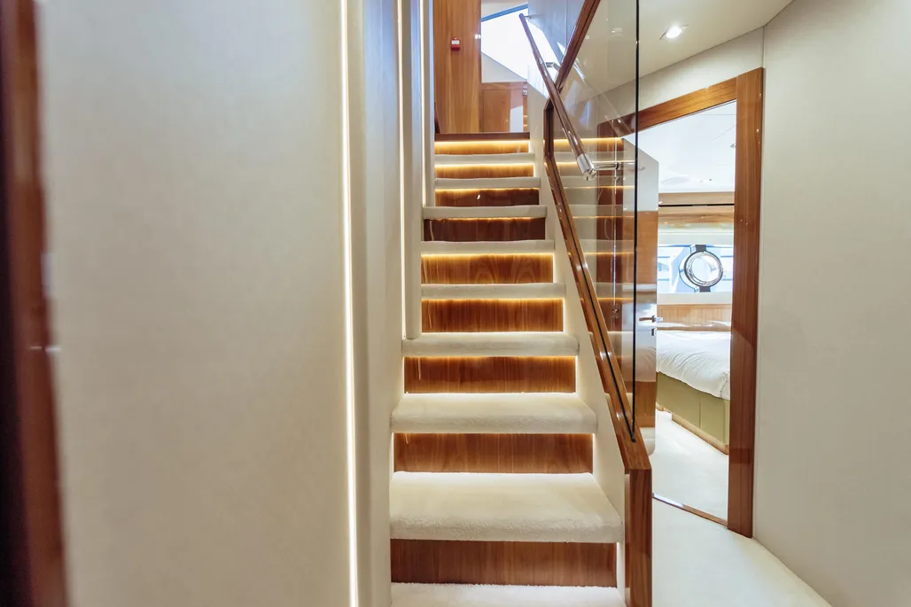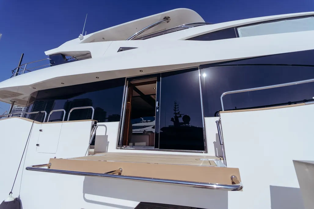 - Flybridge hydraulic crane (480 kg), 5 m hydraulic passerelle